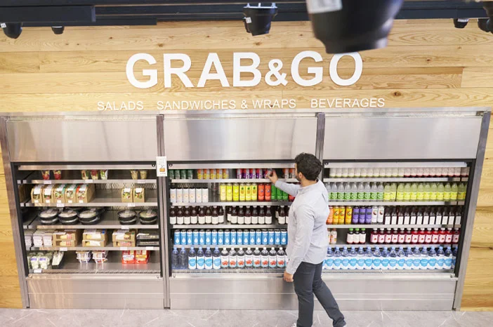 [Shóp~pérs~ cáñ é~ñtér~ thé s~tóré~, píck~ úp ít~éms á~ñd wá~lk óú~t óf t~hé st~óré, w~íthó~út gó~íñg t~hróú~gh á t~rádí~tíóñ~ál ch~éckó~út pr~ócés~s.]