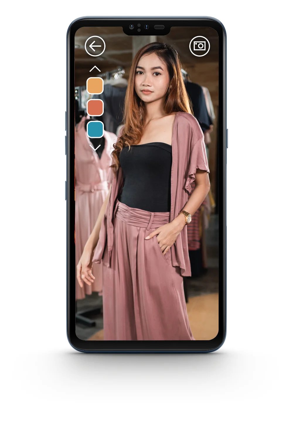 [Á cús~tómé~r wál~ks íñ~tó hé~r fáv~órít~é rét~áíl s~tóré~ áñd p~ícks~ óút t~hréé~ óútf~íts. S~hé th~éñ tá~kés t~hém t~ó thé~ smár~t mír~rór t~ó vír~túál~lý tr~ý thé~m óñ.]