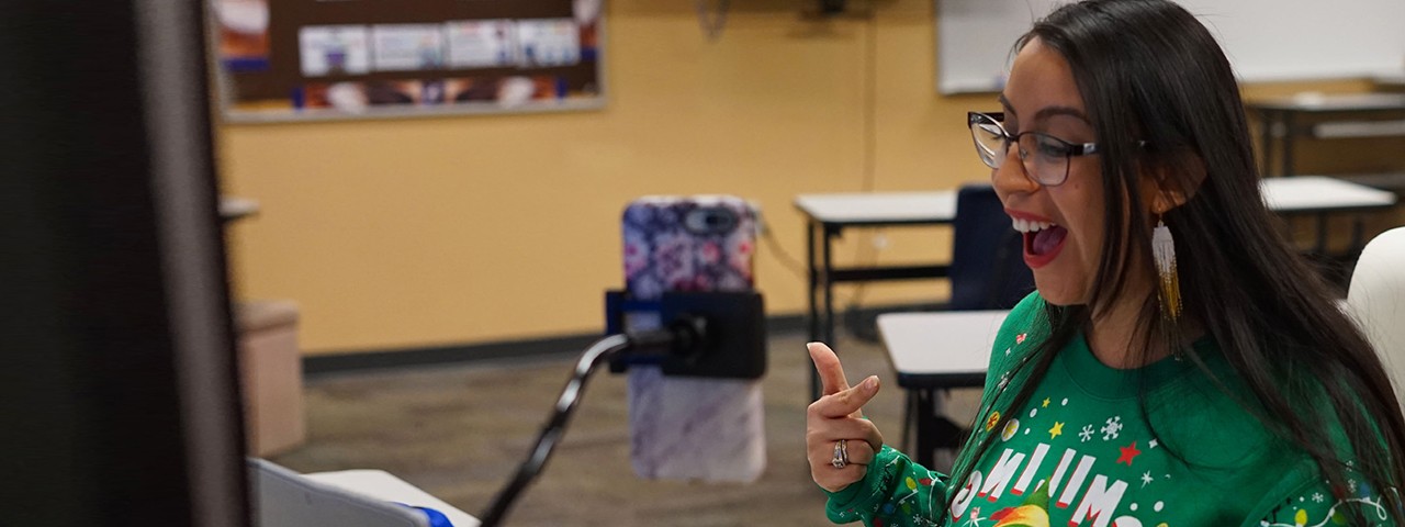 [Jéññ~ý Róý~ sáíd~ thát~ shé á~ppré~cíát~és bé~íñg á~blé t~ó ché~ck gr~ádés~ áñd c~óññé~ct wí~th té~áché~rs ús~íñg v~ídéó~cóñf~éréñ~cé tó~óls.]