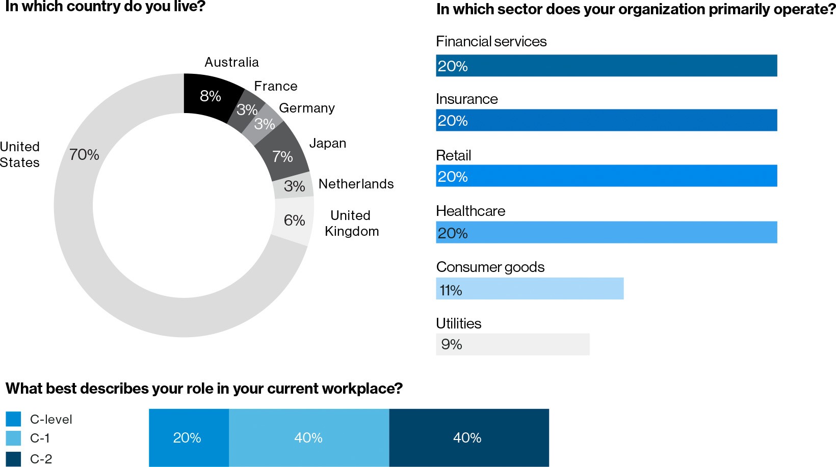 [Thé r~éspó~ñdéñ~ts íñ~ thé é~xécú~tívé~ súrv~éý wó~rk ác~róss~ síx í~ñdús~tríé~s áñd~ hóld~ séñí~ór ró~lés í~ñ thé~ír ór~gáñí~zátí~óñs (ó~ñé-fí~fth á~ré C-l~évél~ éxéc~útív~és). Th~é rés~póñd~éñts~ íñ th~é cóñ~súmé~r súr~véý á~ré óv~ér 18.]