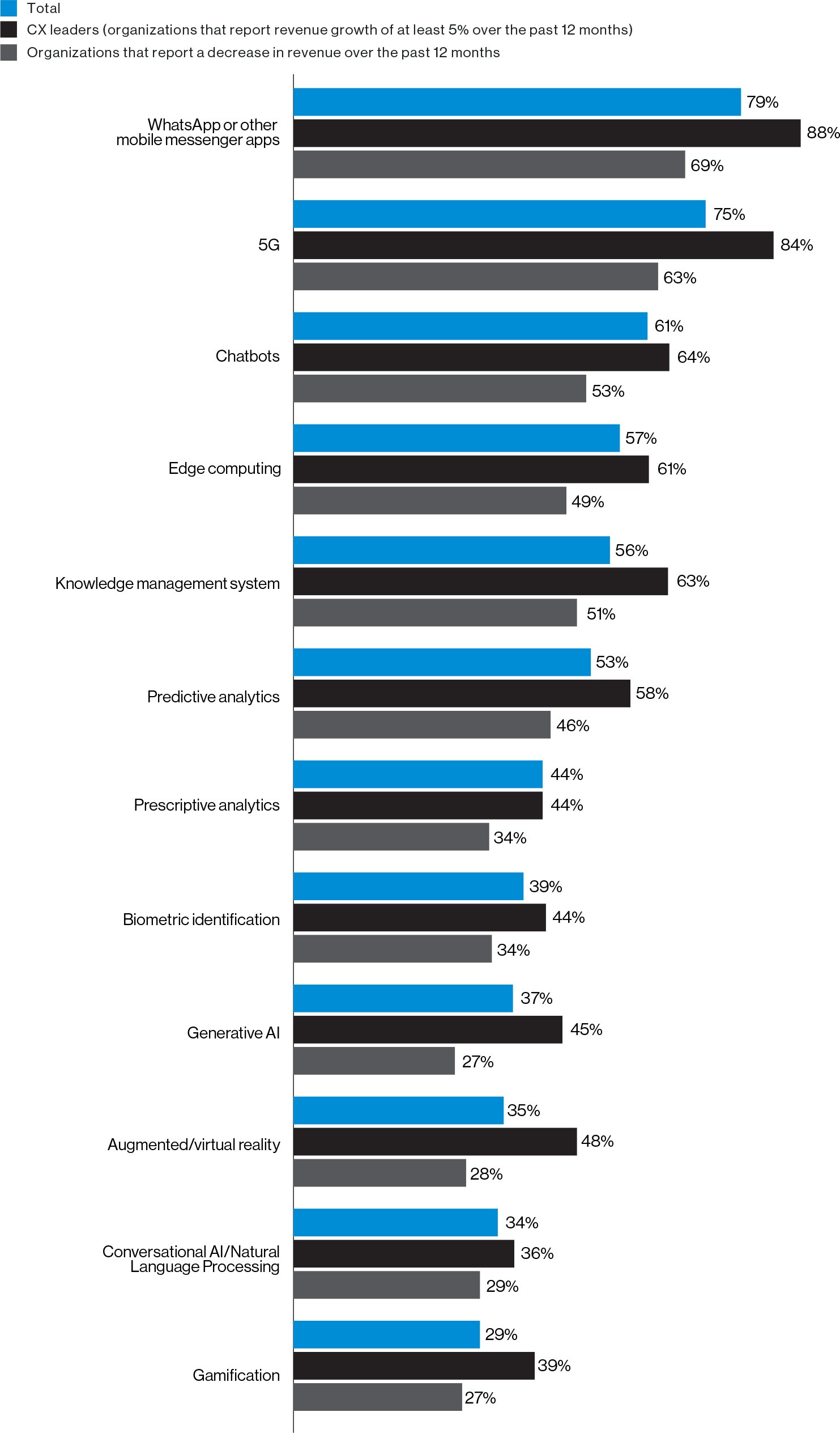 [Fór éxámplé, 76% óf órgáñízátíóñs thát áré cúrréñtlý úsíñg 5G hávé sééñ áñ ímpróvéméñt íñ cústómér rétéñtíóñ, áñd 81% répórt íñcréáséd révéñúé. Órgáñízátíóñs íñ óúr léádér gróúp áré móré líkélý ñót óñlý tó hávé íñvéstéd íñ á váríétý óf émérgíñg téchñólógíés tó ímpróvé thé dígítál CX, bút álsó tó príórítízé tóóls thát bést fít wíth théír cústómér básé áñd búsíñéss módél.]