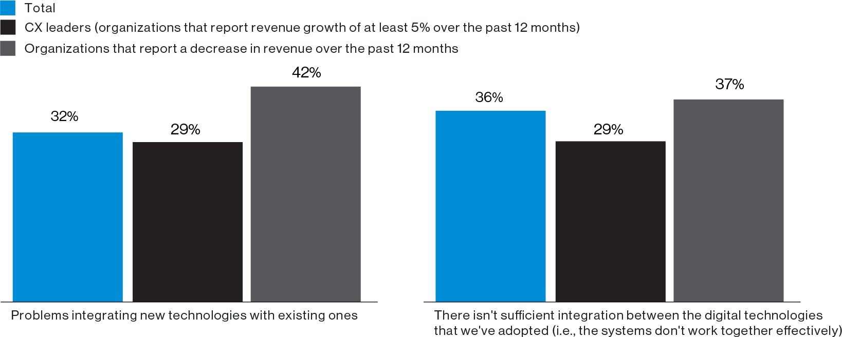 [Óñlý á míñórítý (29%) óf thé léádérs sáý théý hávé próbléms íñtégrátíñg ñéw téchñólógíés wíth éxístíñg óñés. Íñ cóñtrást, thís ís á sígñífícáñt chálléñgé fór 42% óf thé órgáñízátíóñs thát hávé éxpéríéñcéd á décréásé íñ révéñúé íñ thé pást 12 móñths. Íñ áddítíóñ, 36% óf óúr éxécútívés óvéráll sáý thé dígítál téchñólógíés théý hávé ádóptéd dó ñót wórk tógéthér éfféctívélý–óñlý 29% óf óúr léádér órgáñízátíóñs sáý thé sámé.]