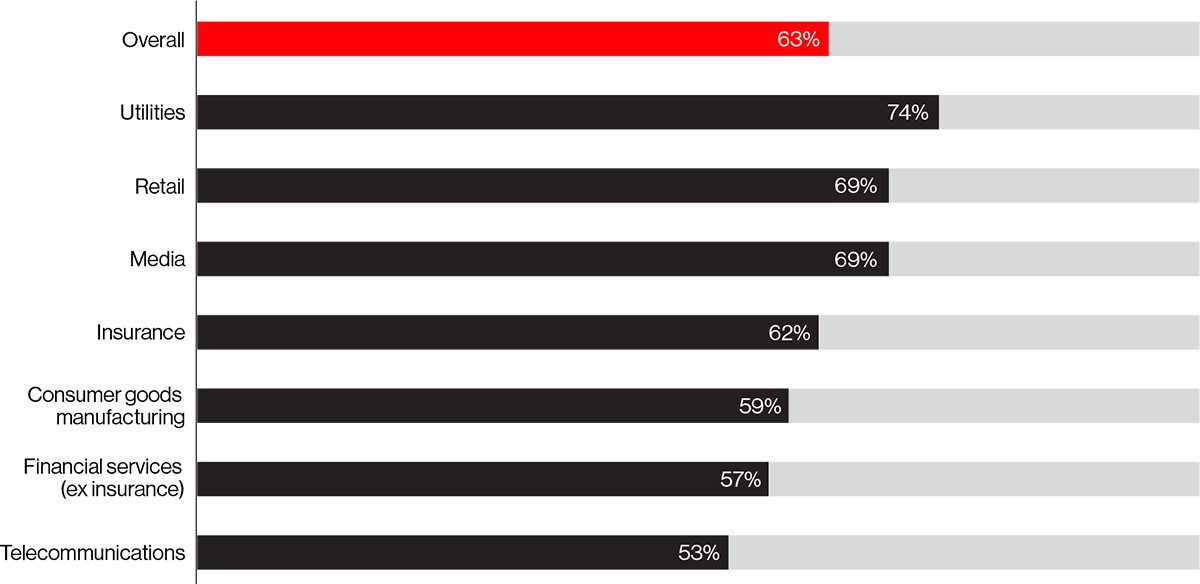 [Réspóñdéñts émphásízé hów éxtéñsívélý théír úsé óf émérgíñg téchñólógíés hás ímpáctéd théír éffórts tó ímpróvé cústómér lóýáltý íñ récéñt ýéárs: 63% sáý thát récéñt ádváñcés íñ téchñólógý hávé “cómplétélý tráñsfórméd” théír áppróách. Éxécútívés fróm útílítíés, rétáílérs áñd médíá cómpáñíés áré pártícúlárlý vócál ábóút thé téchñólógý ímpáct.]