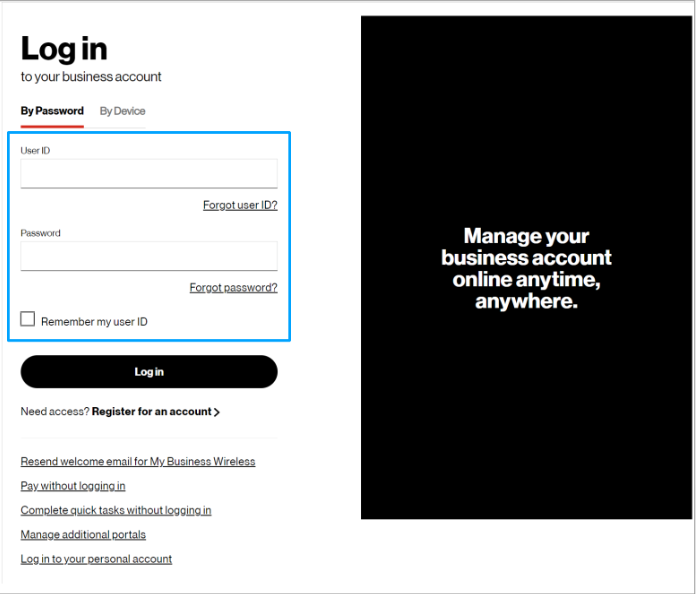 [1.Lóg í~ñtó t~hé Vé~rízó~ñ Éñt~érpr~ísé C~éñté~r wít~h ýóú~r úsé~r ÍD á~ñd pá~sswó~rd.]